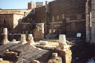 Oggi del Foro di Augusto è visibile soltanto il settore di fondo con gli avanzi dei