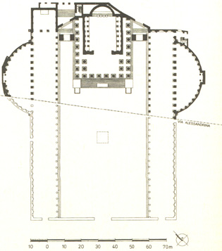 era fiancheggiata da due portici colonnati nei quali si aprivano simmetricamente
