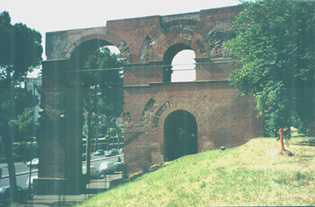 Si tratta dell'Acquedotto Claudio, fatto prolungare dall'imperatore Domiziano fino al Palatino per rifornire d'acqua il palazzo imperiale. Provenendo dall'ingresso posto su via di San Gregorio, sulla destra rispetto ai resti dell'acquedotto si possono notare delle costruzioni in laterizio che si possono identi- ficare come impianti di distribuzione idrica.