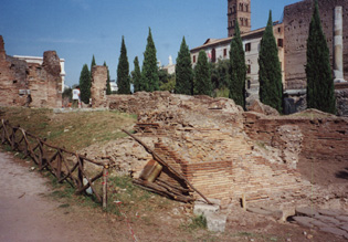 Situati a fianco della Via Sacra, sono visibili i resti di un complesso (immagine 1, immagine 2) che si presume fosse adibito a terme e che è stato da alcuni riconosciuto come le terme di Elagabalo. L'area è ancora oggetto di scavi, ma ad una prima visione si può notare un ambiente absidato con fontane probabilmente destinato ad uso termale ma in seguito adibito a luogo di culto.